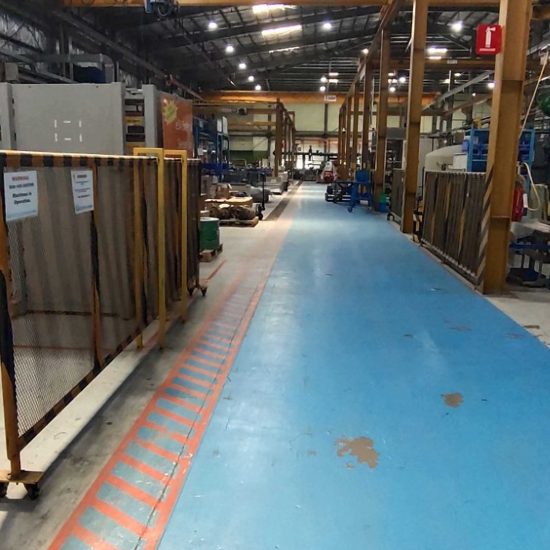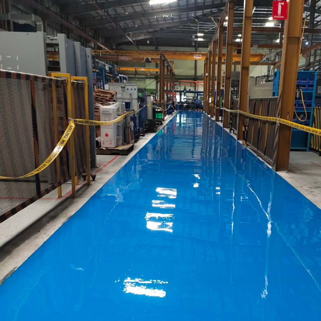 A complete flooring transformation designed for industrial performance. This project involved resurfacing a heavily worn concrete floor with our high-build, self-leveling epoxy mortar system.